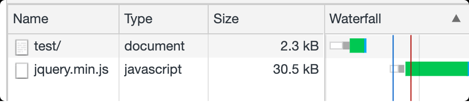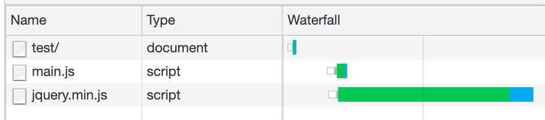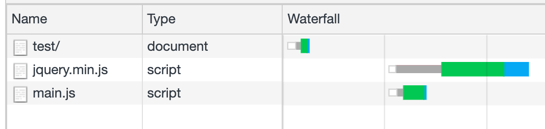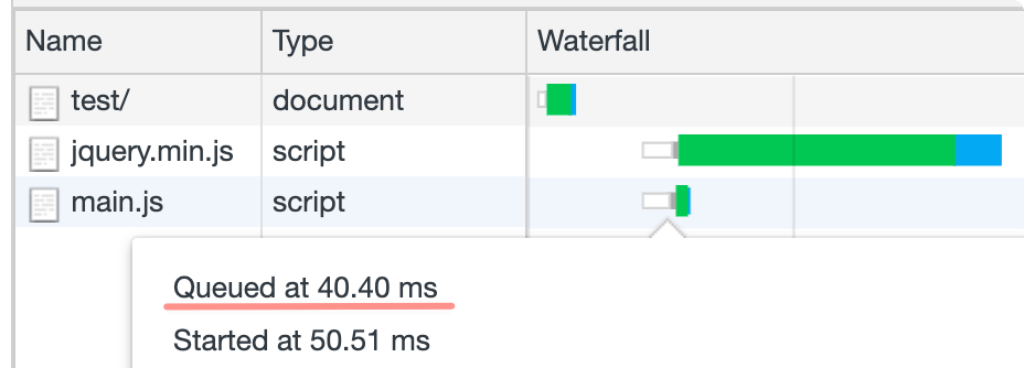 可以看到 test.js 的 queued time 是比 jquery.min.js 來的早的