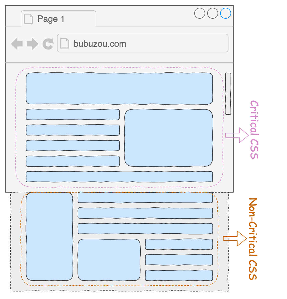 在首屏載入優化中一直存在一種技術,叫做抽取關鍵 CSS ,意思就是把頁面中在視口中出現的樣式抽出一個獨立的 CSS 檔案出來 critical.css ,然後剩餘的樣式在放到另外一個檔案上 non-critical.css :