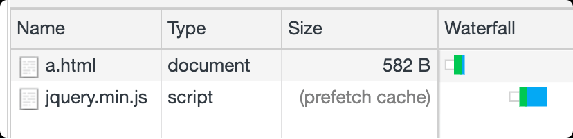 當資源被下載完成後,會被存到瀏覽器快取中,當從首頁跳轉到頁面 A 的時候,假如頁面 A 中引入了該指令碼,那麼瀏覽器會直接從 prefetch cache 中讀取該資源,從而實現資源載入優化。